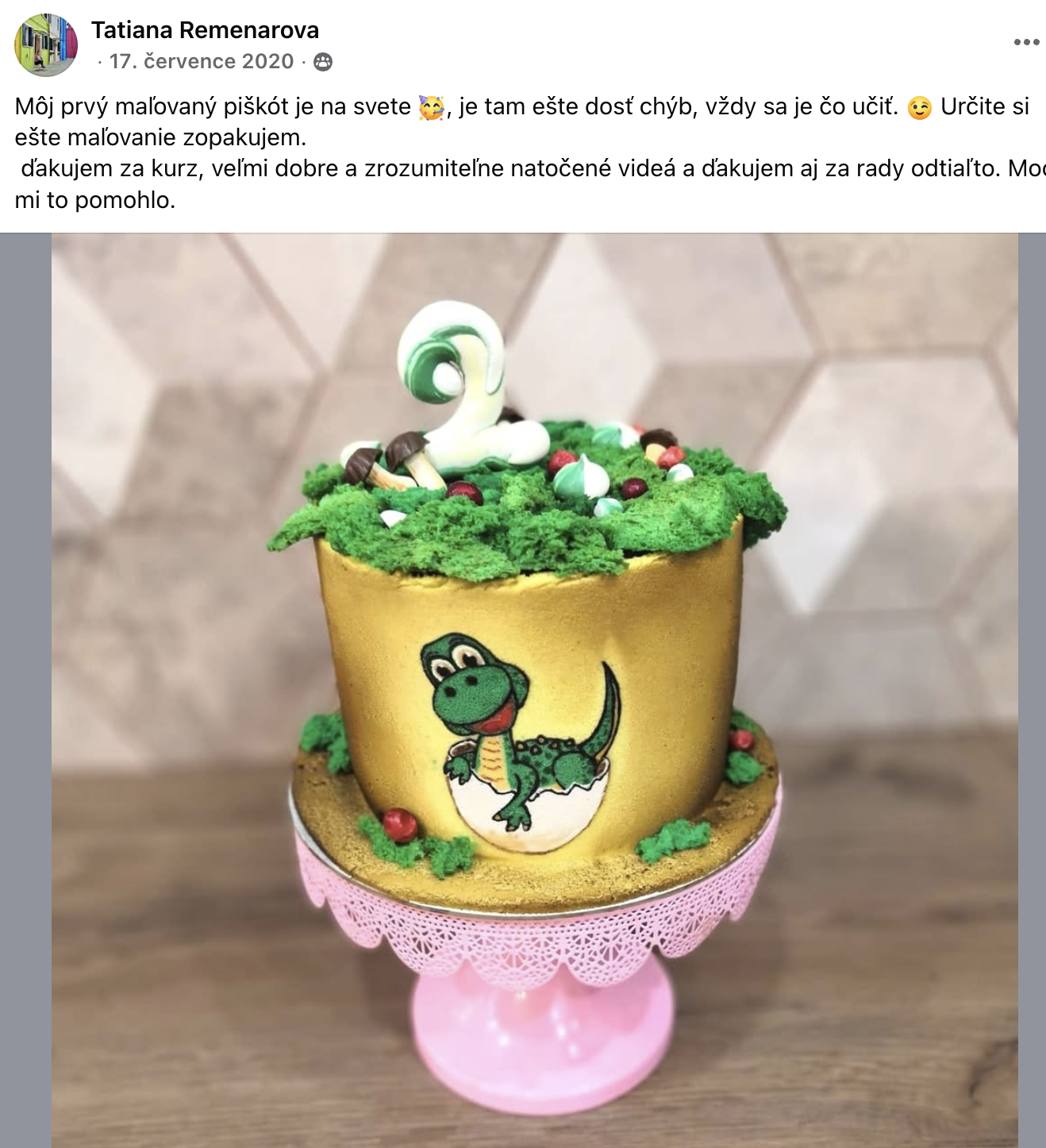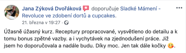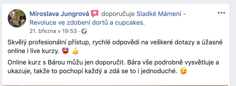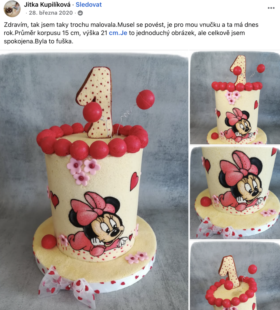 Najdeš ji v online kurzech Malovaný piškot, Sametový efekt, Ultra čoko tartaletka, Rybičkový dort, Origami dort a Potahování dortu.